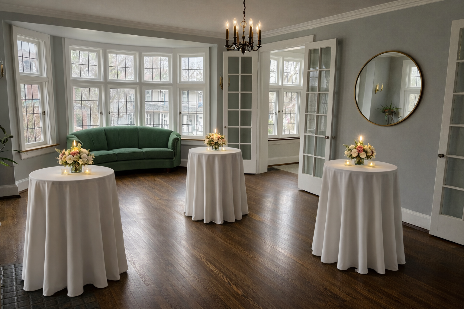 *Tables can be swapped out depending on your event vision. Standard tables are rectangular but we also have 6 high-top cocktail tables (no chairs) and 6 round banquet tables. Mix and match options are available.